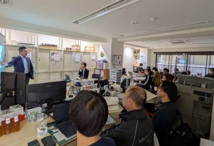 今回は、株式会社ハンズ 河野様・白根様、そして弊社社用車の管理・整備をお願いしているモーターベース 佐藤様を講師にお迎えしました。