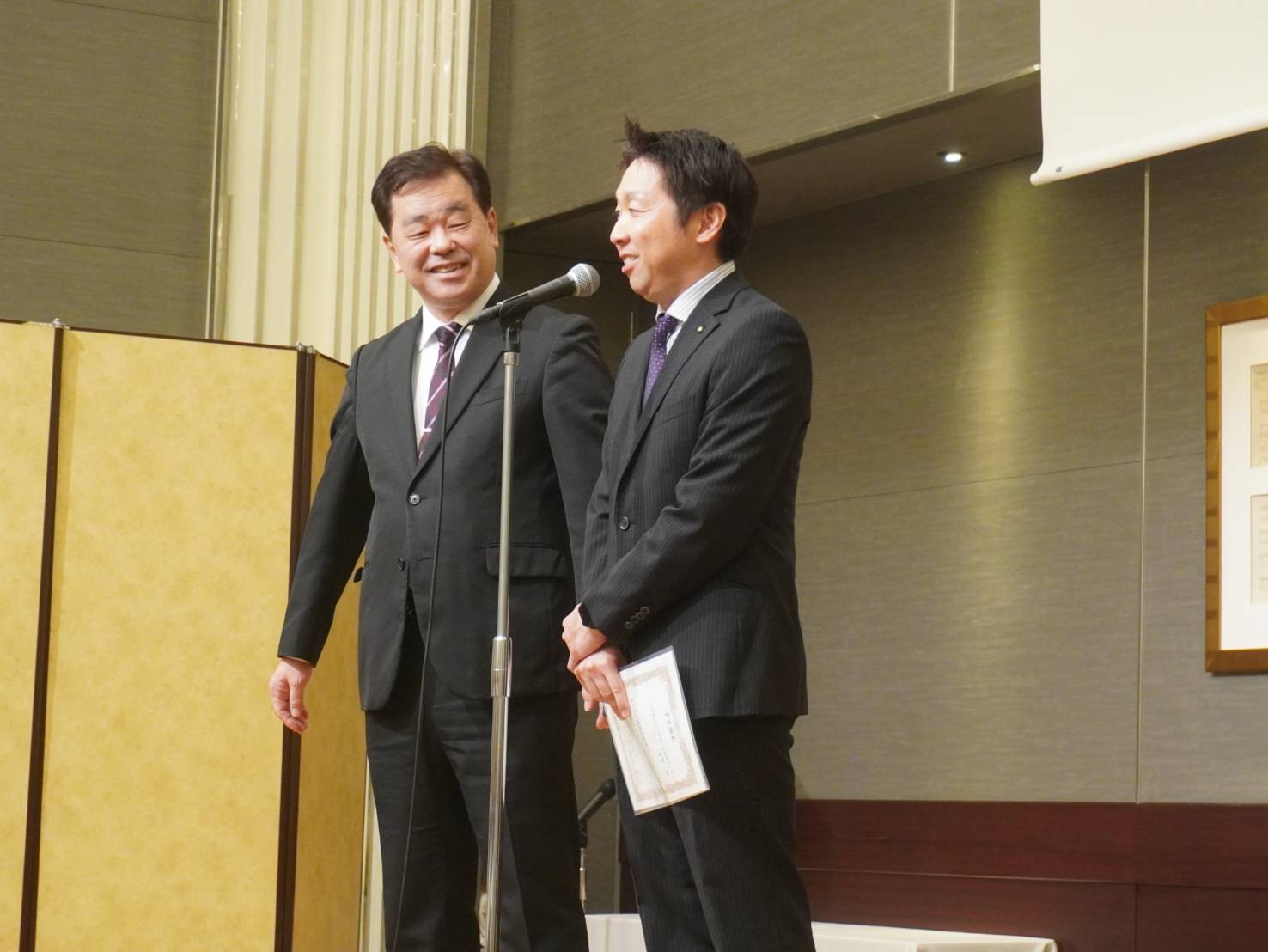今年度は有志によるチーム対抗方式とし、映えある余興大賞には、同期2名による息の合った漫才を披露し、会場を大いに沸かせた「オムツドリー チーム」が選ばれました。