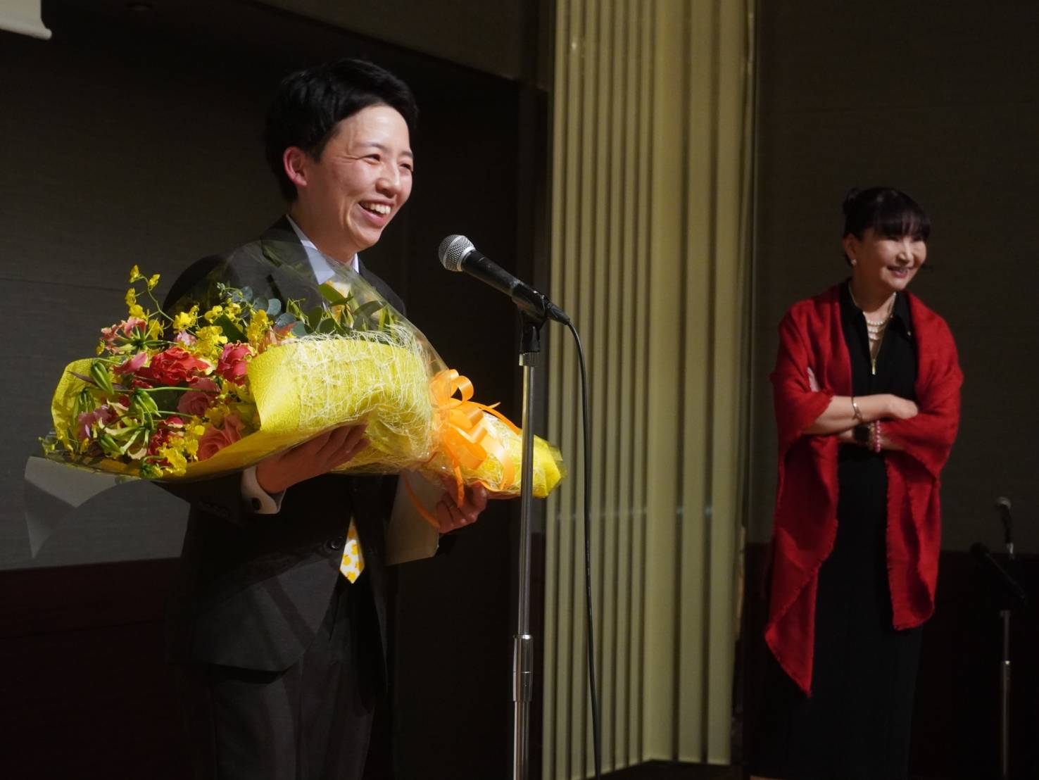 加えて、大変喜ばしいご報告として、山形県立保健医療大学大学院博士課程に在籍する弊社職員・大戸 普賢が、大学院学生表彰を受賞し、本表彰は、学長に代わり、恩師である藤井浩美教授より授与されました。